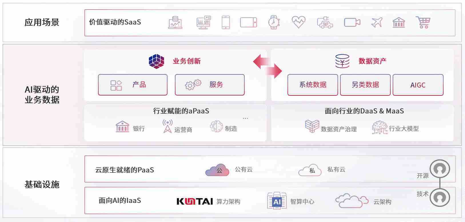 数字时代,,,,围绕企业数字化转型的关键要素,,,,财神娱乐数码开创性的提出数云融合战略和技术体系框架,,,着力在云原生、、数字原生、、、、AI原生和信创产业上架构产品和服务能力,,,为处在不同数字化转型阶段的快消零售、、、汽车、、、金融、、医疗、、政企、、教育、、、、运营商等行业客户提供泛在的敏捷IT能力和融合的数据驱动能力,,,,构建跨界融合创新的数字业务场景和新业务模式,,,助力企业级客户建立面向未来的核心能力和竞争优势,,,全面推动社会的数字化、、、智能化转型升级。。
