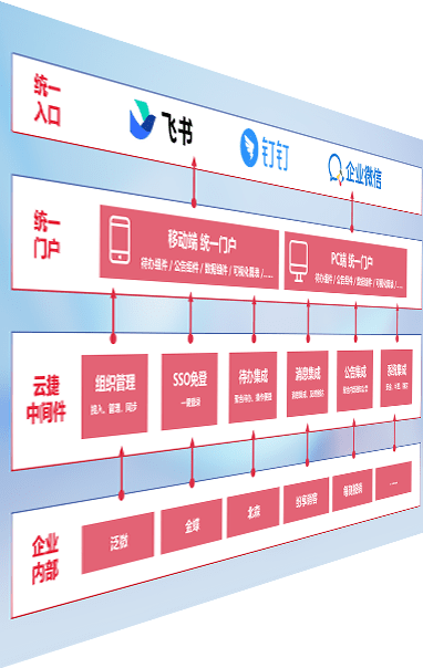 对协作平台提供支持服务,,,支持企业应用与协作平台对接,,包含组织同步、、消息集成、、、待办集成等。。。支持目前主流的协作平台:钉钉、、企微和飞书。。